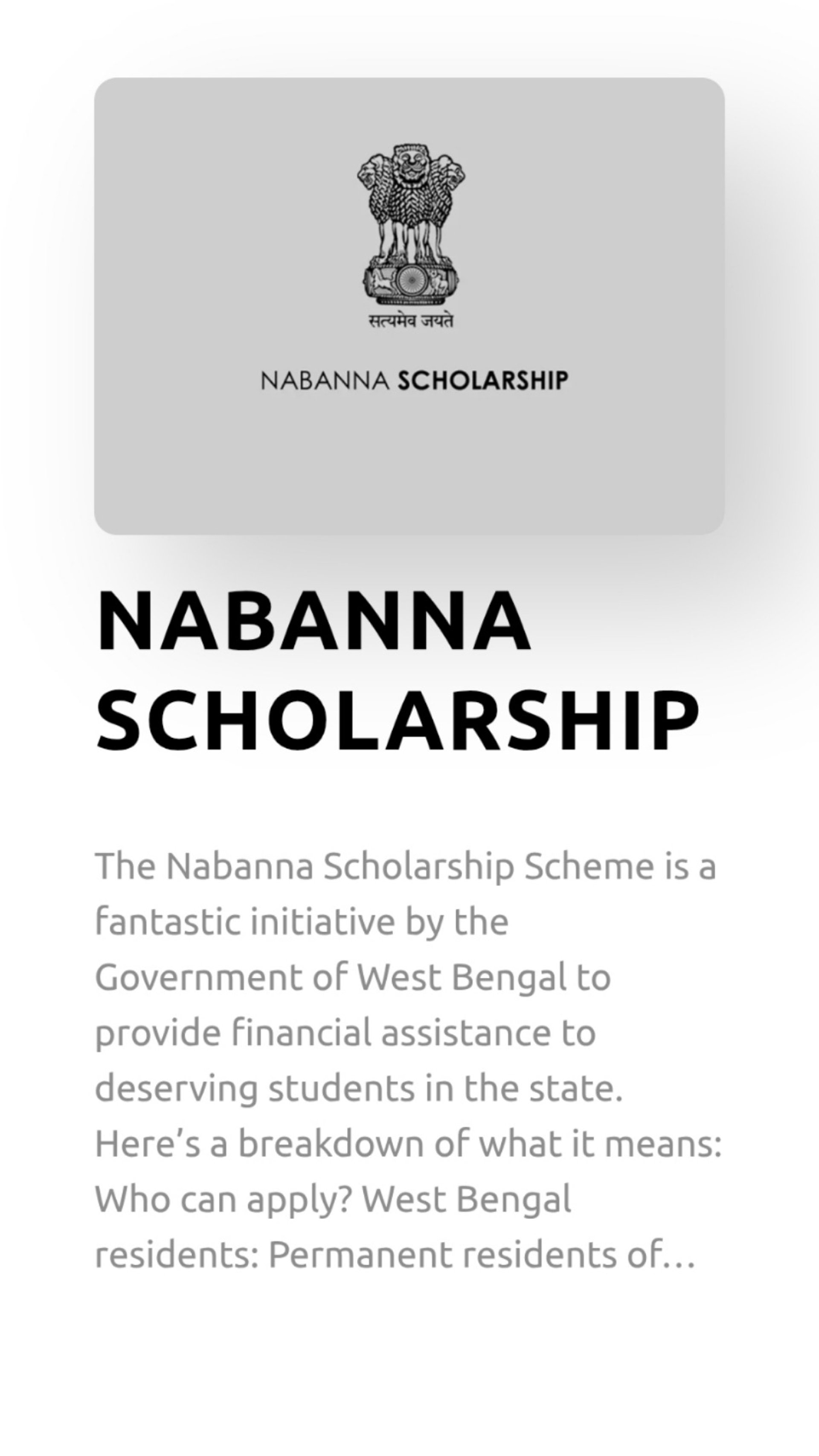 A scholarship is a reward or a financial aid given to a student to complete his studies. Students with outstanding academic scores, good score in competitive exams or excellent extra- curricular achievements are eligible for various kinds of scholarships.